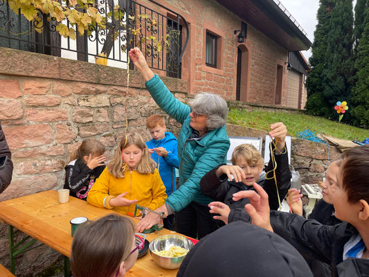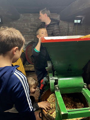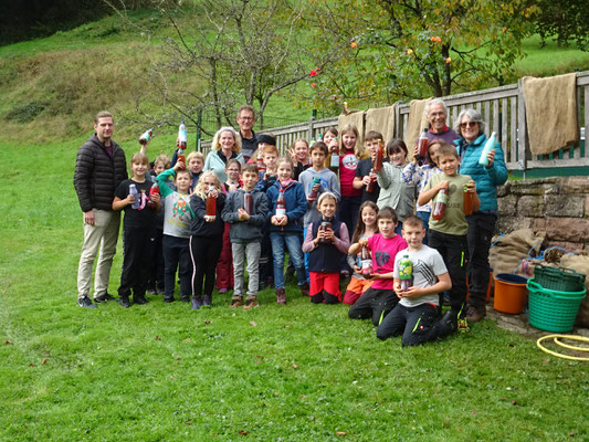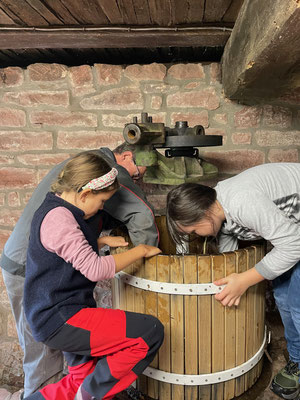 Traditionelles Keltern mit der 4. Klasse der Grundschule in Eiterbach |